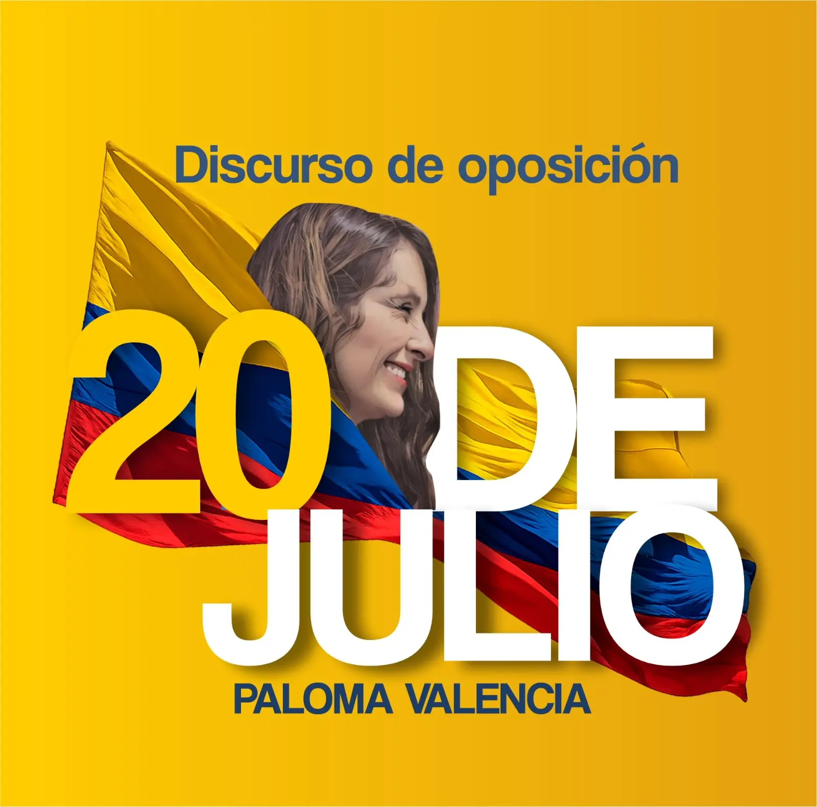 El tono patriótico del mensaje fue reforzado visualmente con la imagen oficial difundida por su equipo, en la que aparece envuelta en la bandera de Colombia y con la frase «20 de julio – Discurso de oposición» destacada en primer plano.