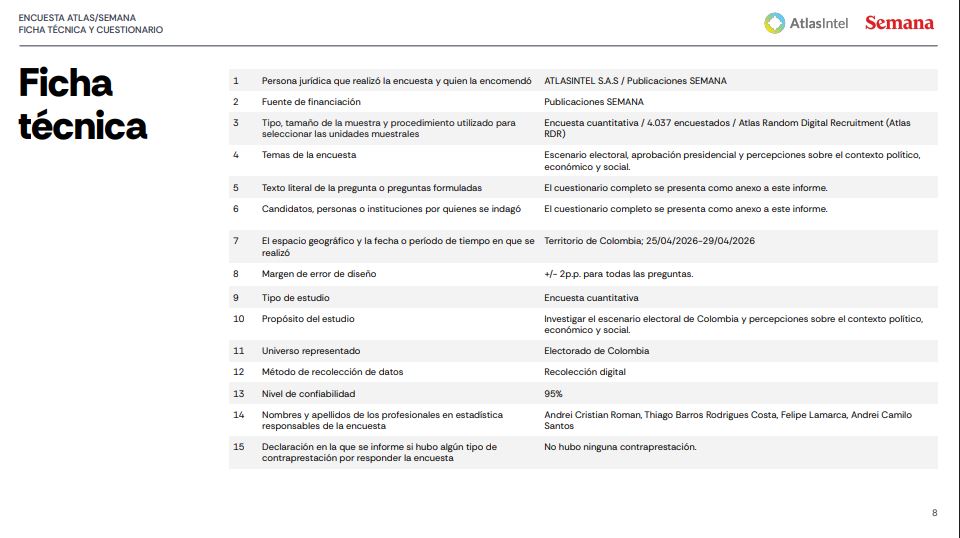 Nota: Esta es la encuesta AtlasIntel para la revista Semana, Abelardo de la Espriella pasa a segunda vuelta y vence a Cepeda.